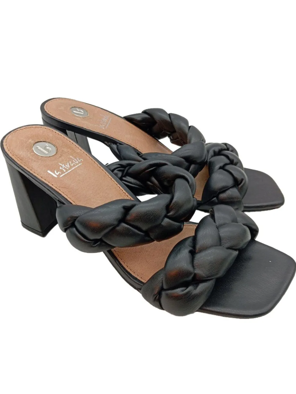 - La Strada Absatz Pantoletten, schwarz Zopfmuster