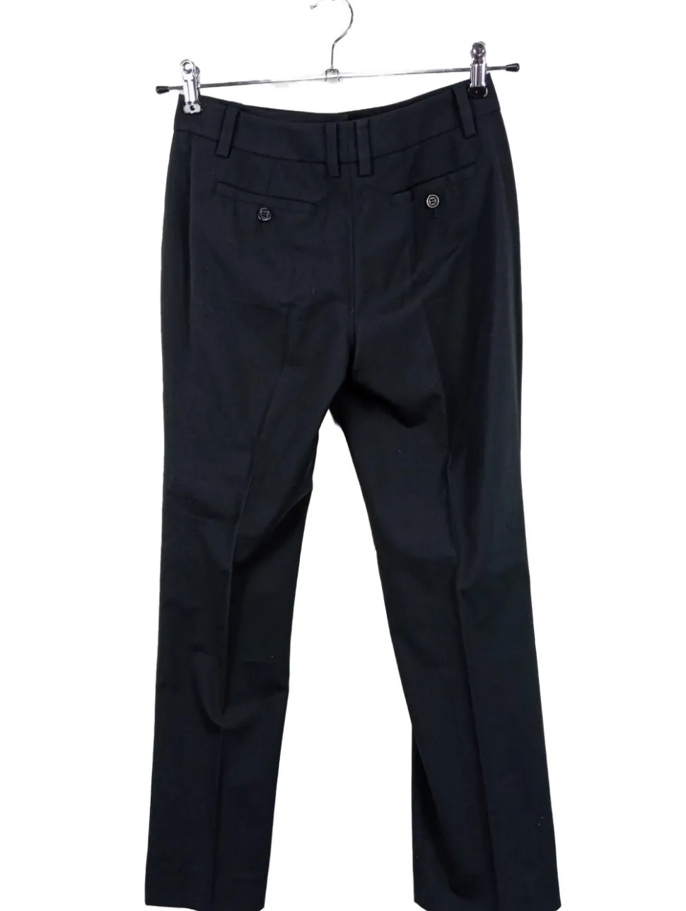 - Hosenreißverschluss, Eingriffstaschen, Gesäßtaschen, Leistentaschen, Taschen mit Knopfverschluss, Business-Look, klassischer Stil