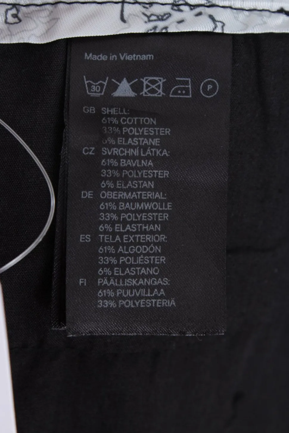 - Außenmaterial: 61% Baumwolle, 33% Polyester, 6% Elasthan