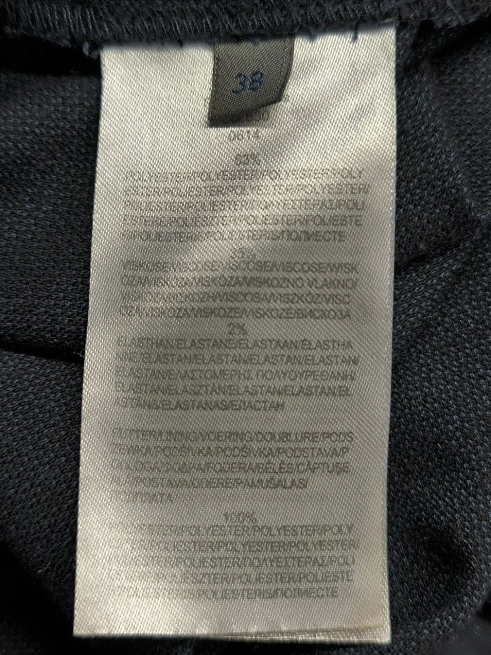 - Außenmaterial: 63% Polyester, 35% Viskose, 2% Elasthan