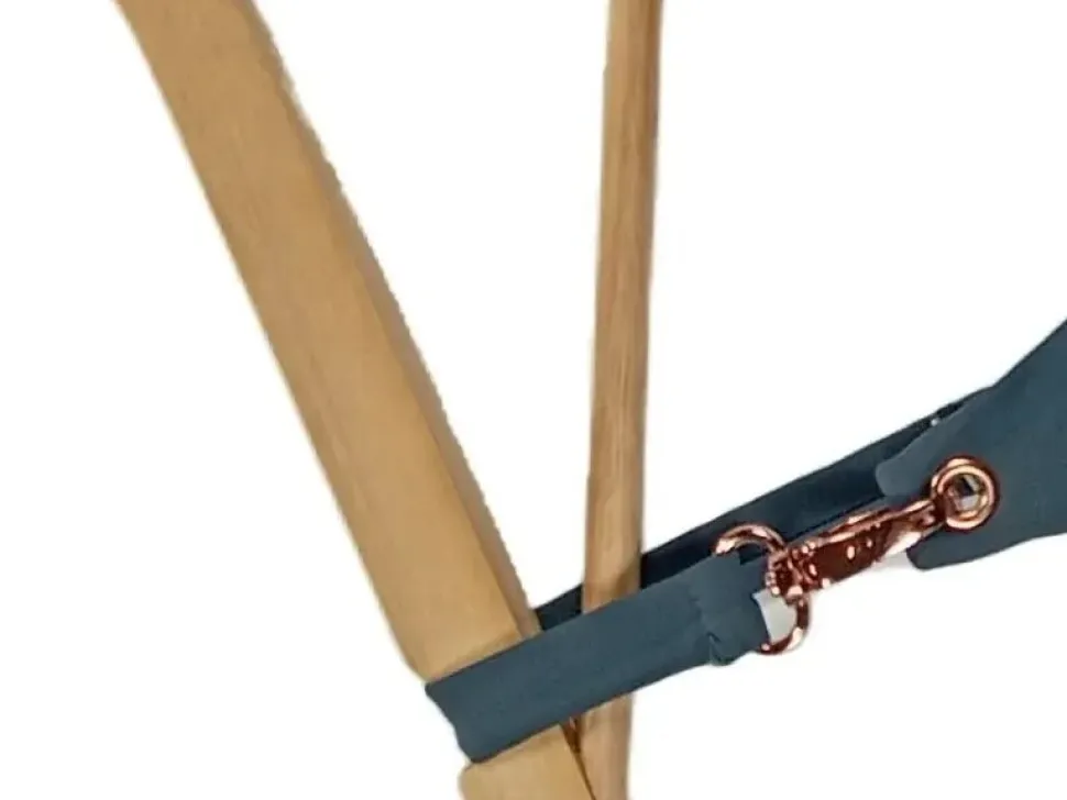 - Verschluss: Häkchen und Ösen