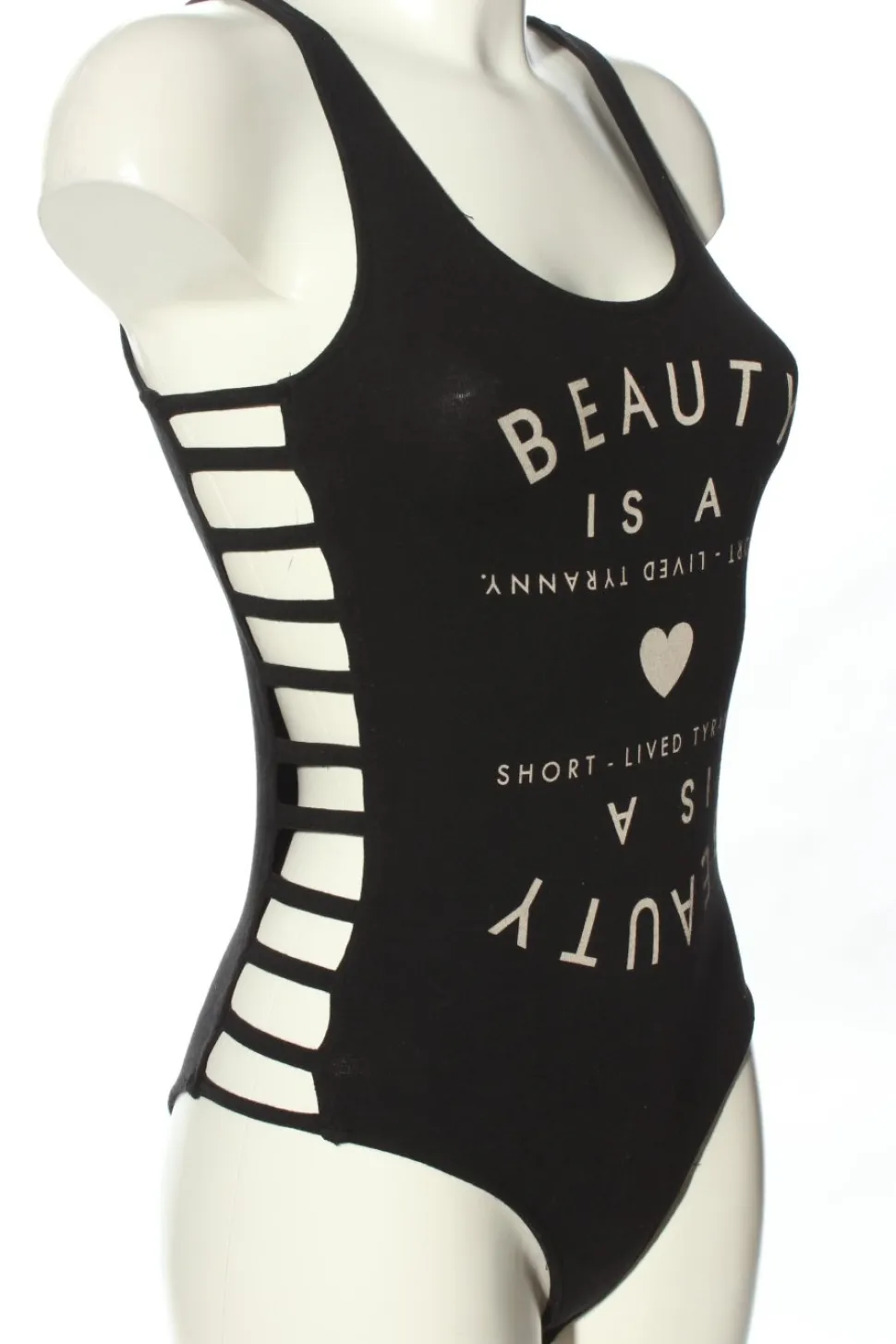 - Forever 21 Basic-Body, schwarz-wollweiß Schriftzug gedruckt