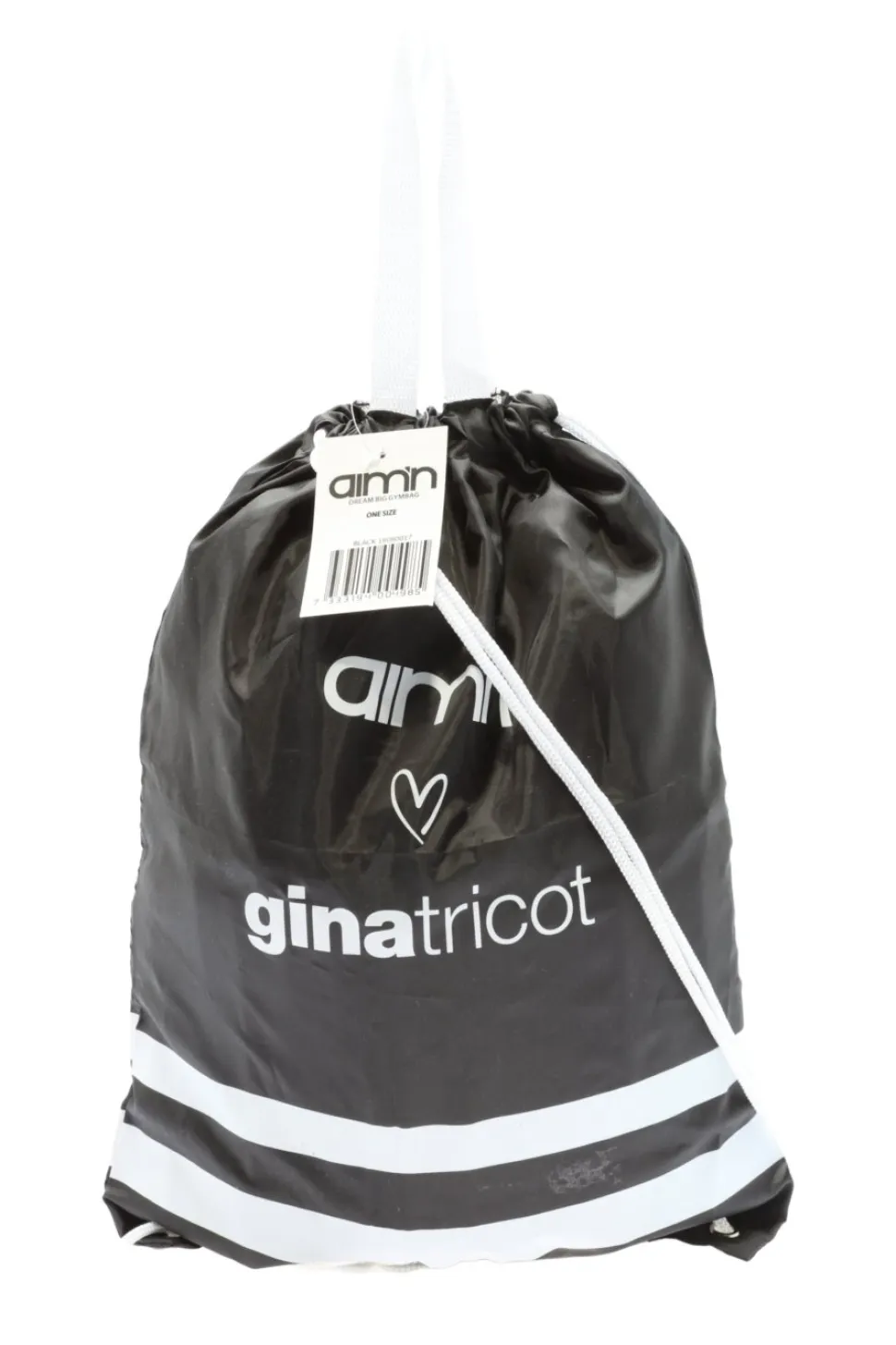 - Aim’n Beuteltasche, schwarz-weiß Schriftzug gedruckt