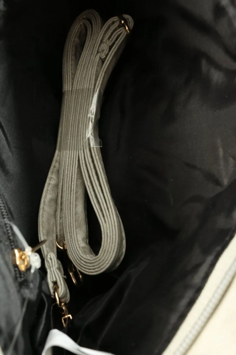 - Details: goldfarbene Hardware, Schulterriemen, Metallelemente, Zierbesatz, Reißverschlussinnenfach
