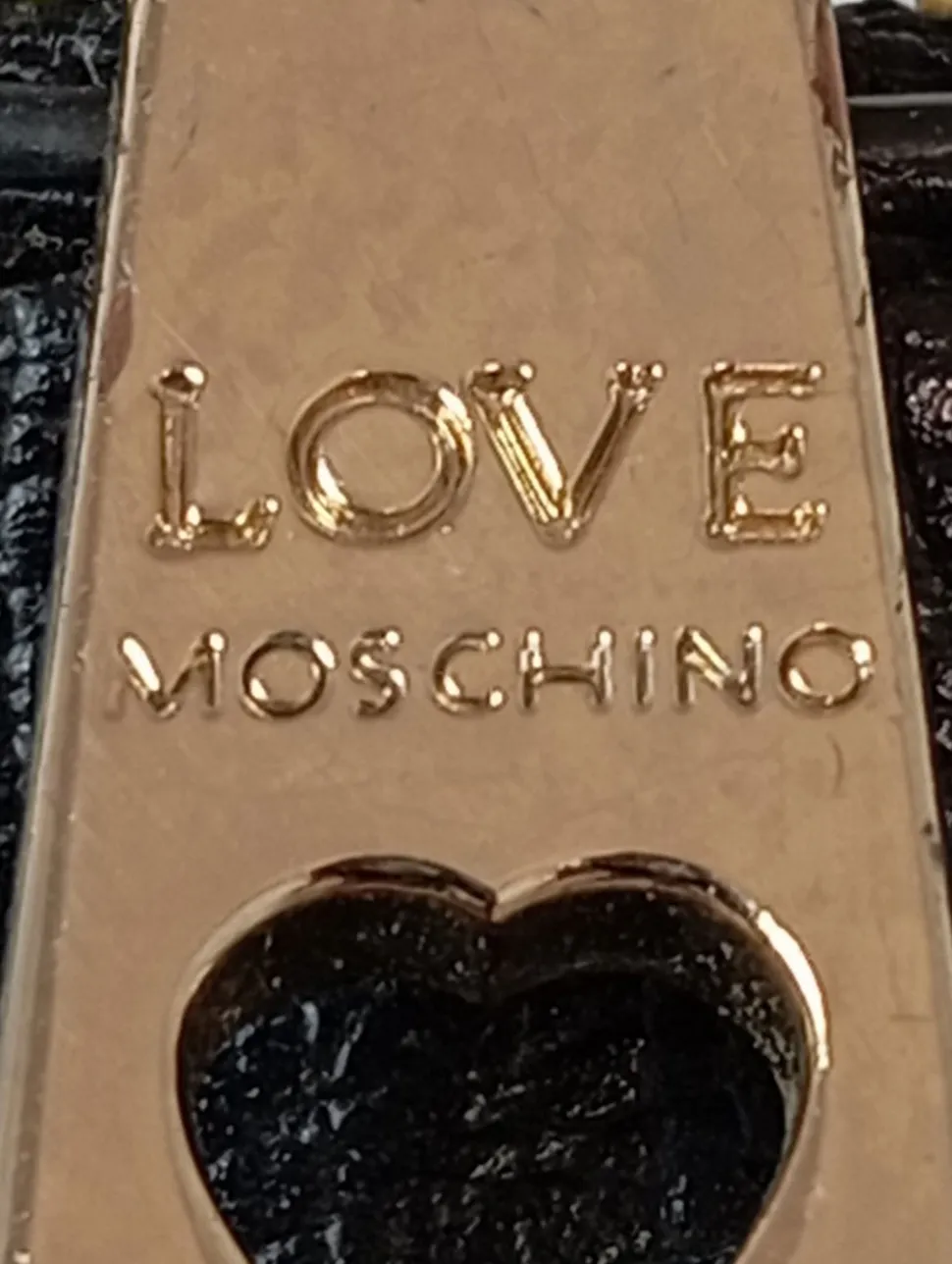 - Moschino Handtasche, schwarz Schriftzug gedruckt