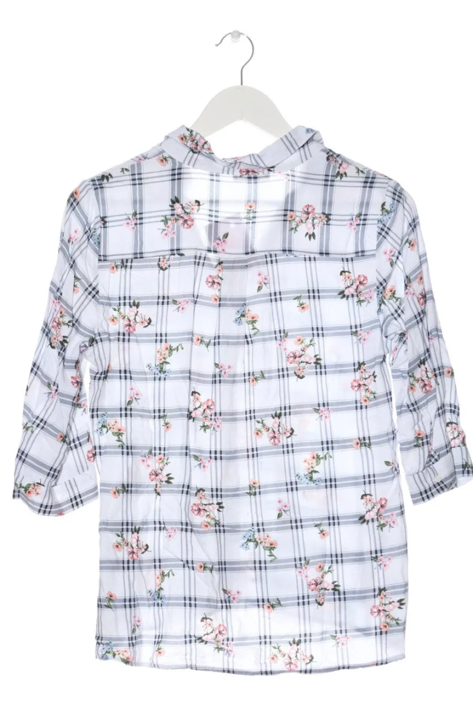 - V-Ausschnitt, Umlegekragen, Knopfverschluss am Ärmelsaum, Knopfverschluss, Blumenmuster, Karomuster, Casual-Look, Street-Fashion-Look