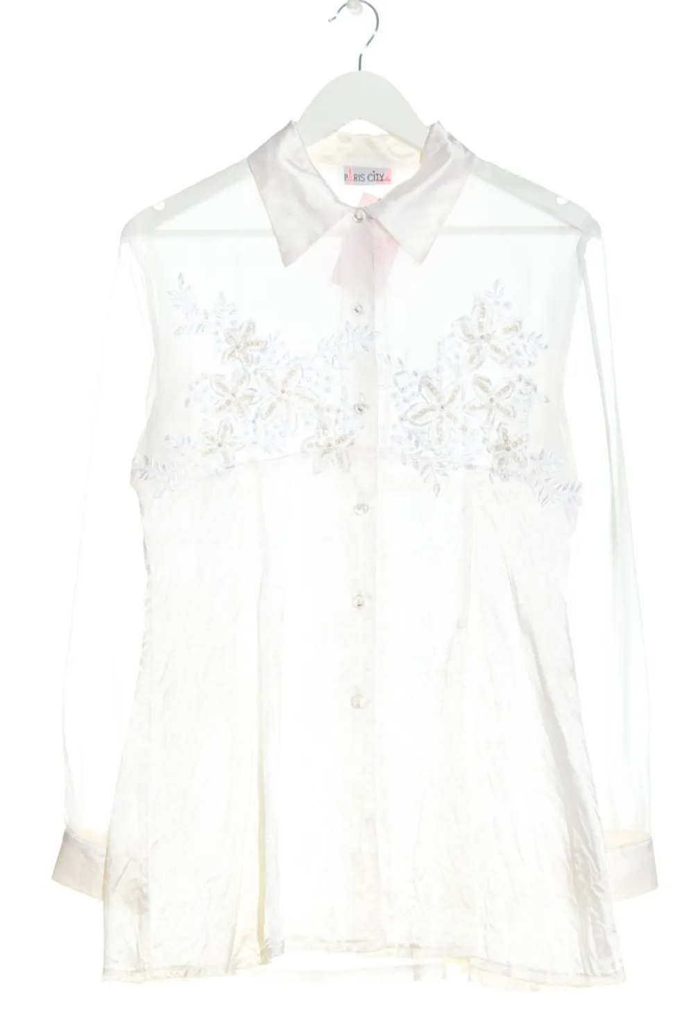 - Hemd-Bluse, wollweiß Schriftzug gestickt