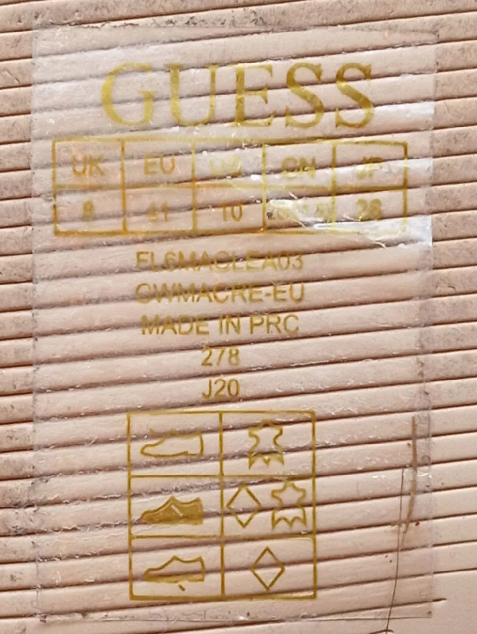 | Zustand | Gut Getragen, weist aber minimale Gebrauchsspuren auf, z. B. an der Schuhsohle, einzelne Fäden. |