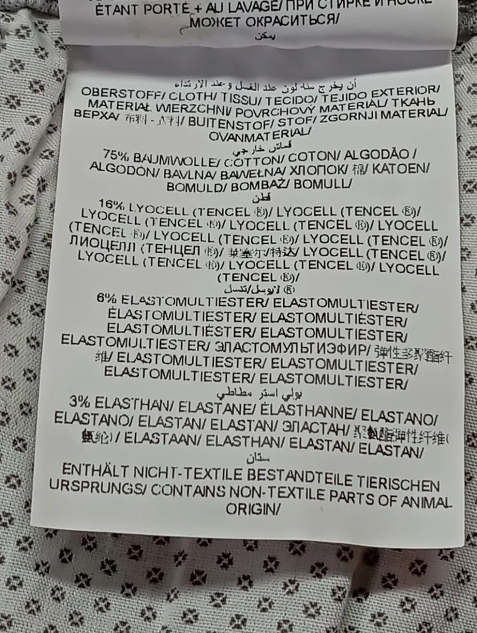 - Außenmaterial: 75% Baumwolle, 16% Lyocell, 9% Elasthan