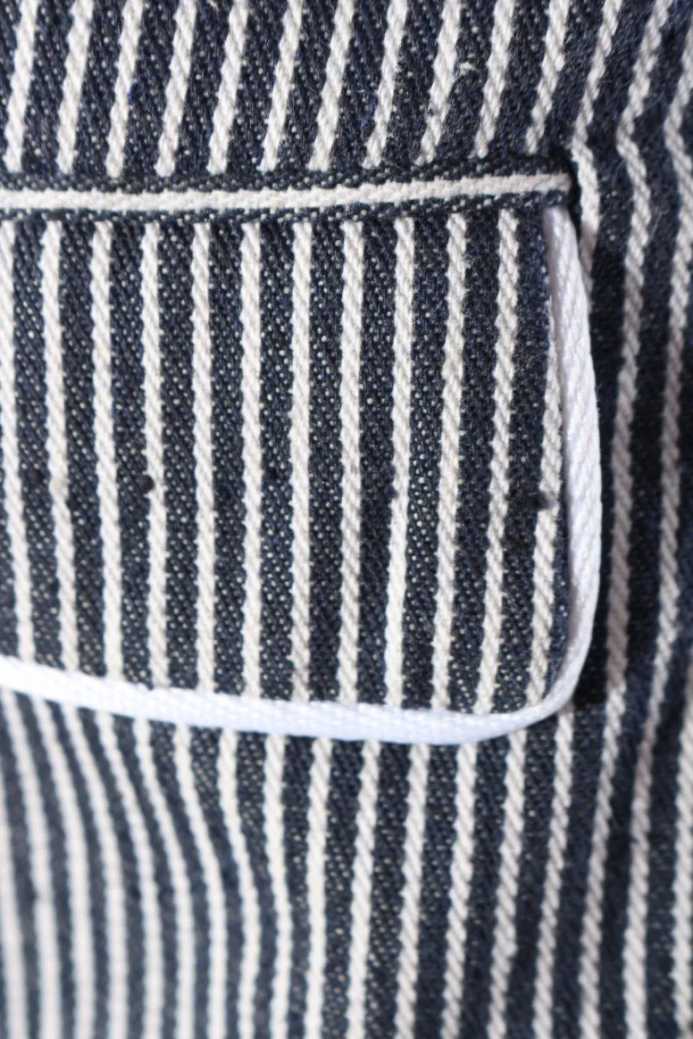 - tiefer V-Ausschnitt, Umlegekragen, Knopfverschluss, Pattentaschen, Allover-Druck, Streifenmuster, Business-Look, Elegant, klassischer Stil