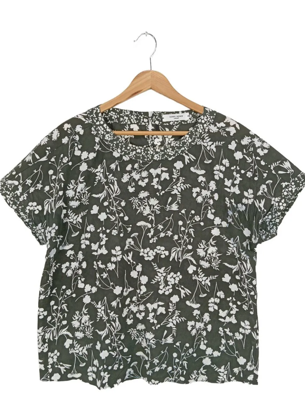 - Gerry Weber Kurzarm-Bluse, hellgrau Allover-Druck