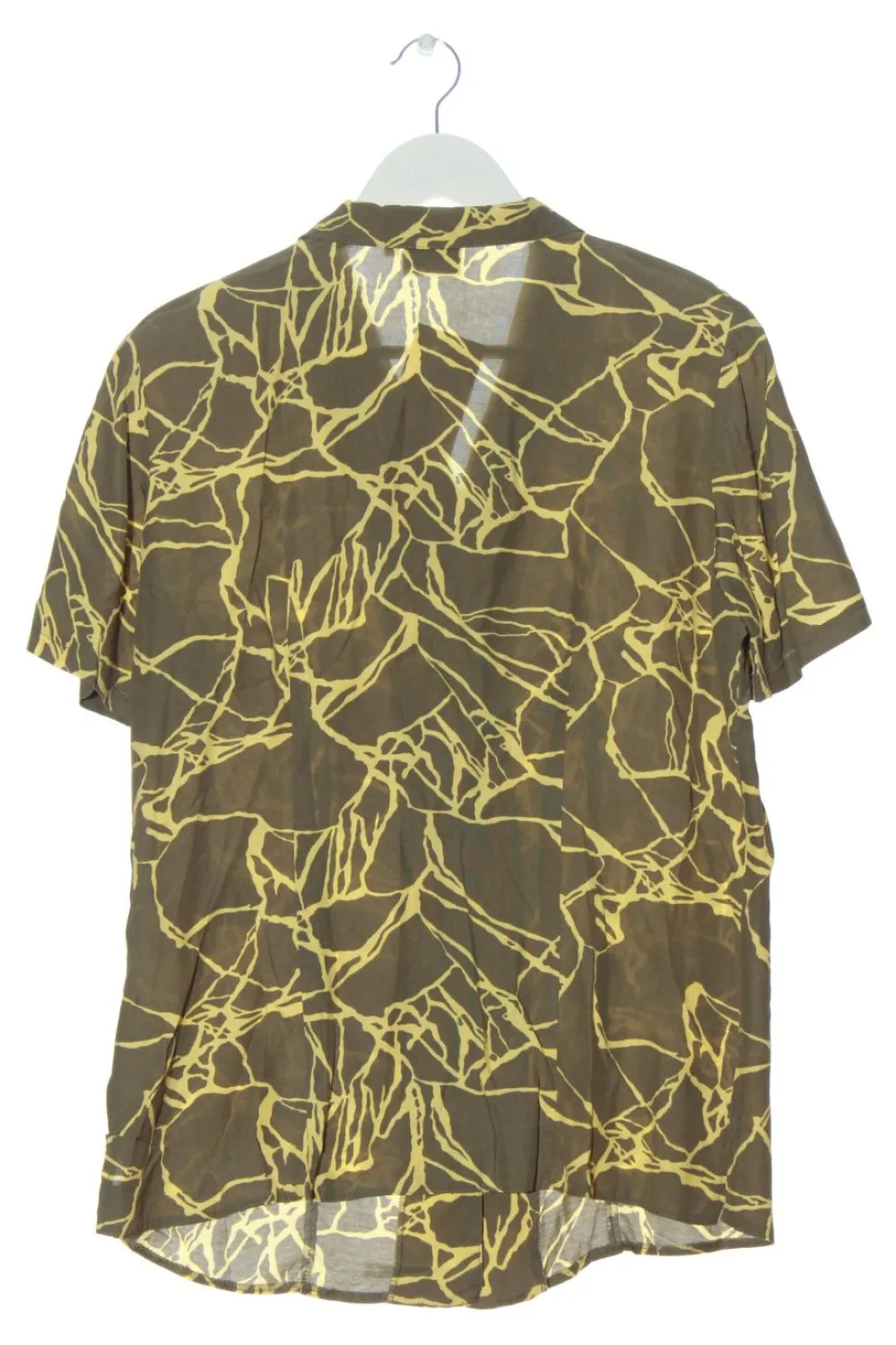 - V-Ausschnitt, Umlegekragen, Bund am Ärmelsaum, Knopfverschluss, abstraktes Muster, Allover-Druck, Casual-Look, Elegant, klassischer Stil