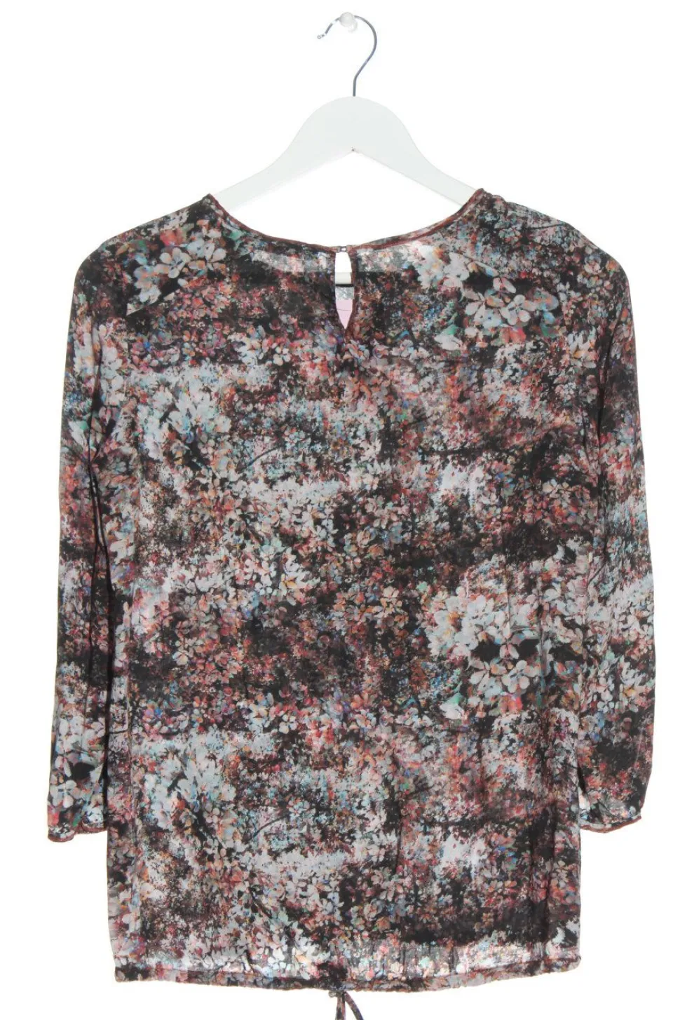 - Rundhalsausschnitt, Bund am Ärmelsaum, Knopfverschluss hinten, Knotenverschluss, Allover-Druck, Blumenmuster, Casual-Look, Elegant