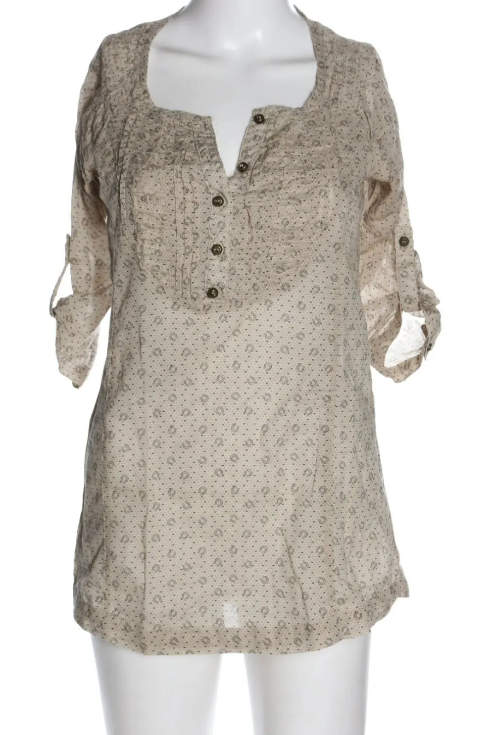 - Schlüssellochausschnitt, U-Ausschnitt, Ärmellaschen (innen zum Hochkrempeln), Knopfverschluss, Allover-Druck, Motivdruck, Casual-Look, klassischer Stil, Street-Fashion-Look