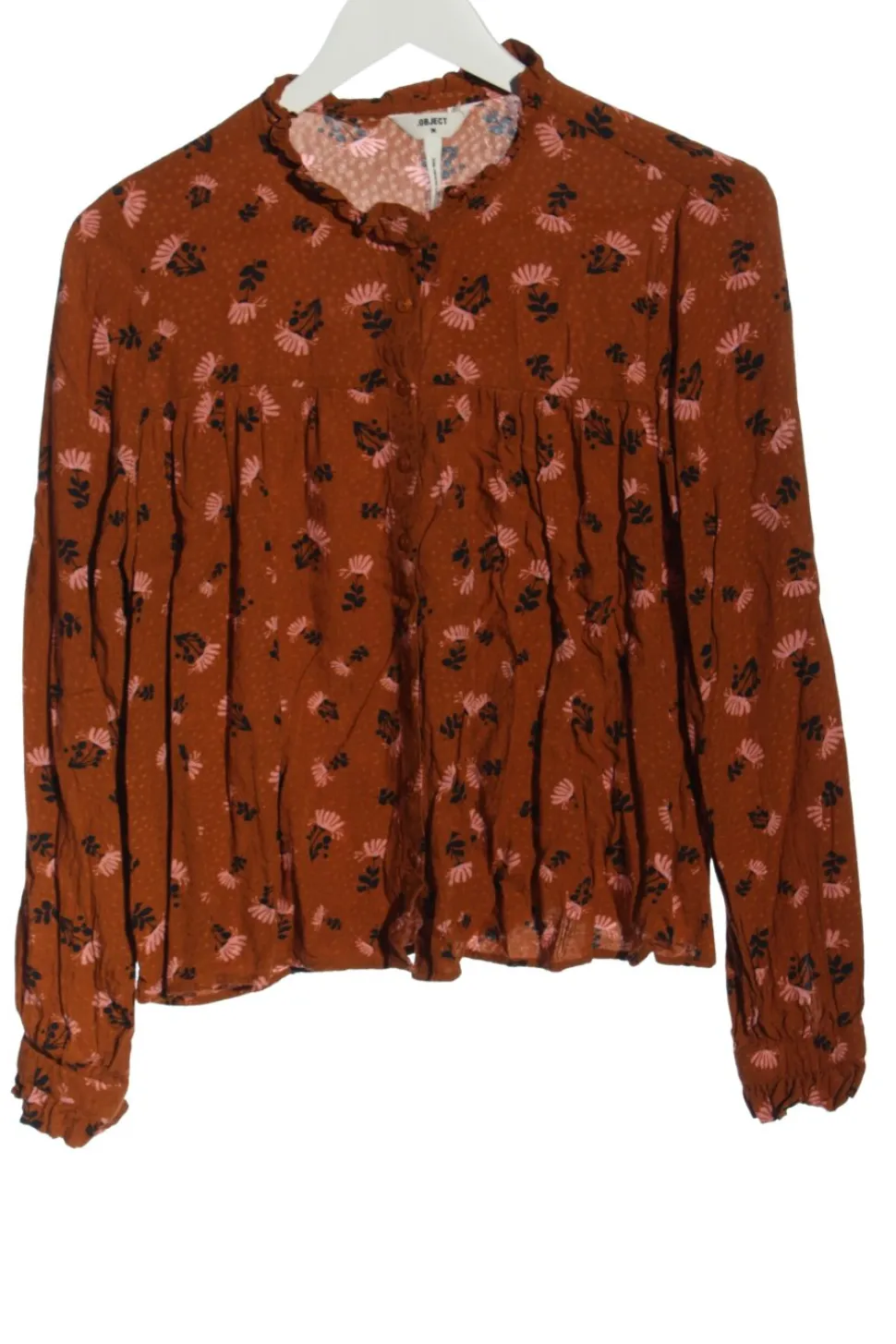 - Object Langarm-Bluse, rot Blumenmuster