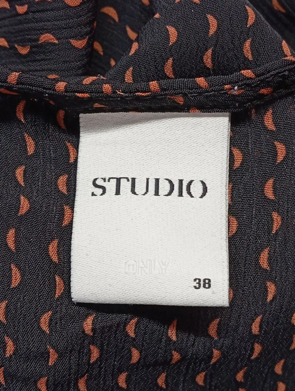 - Studio Langarm-Bluse, hellorange-schwarz Allover-Druck