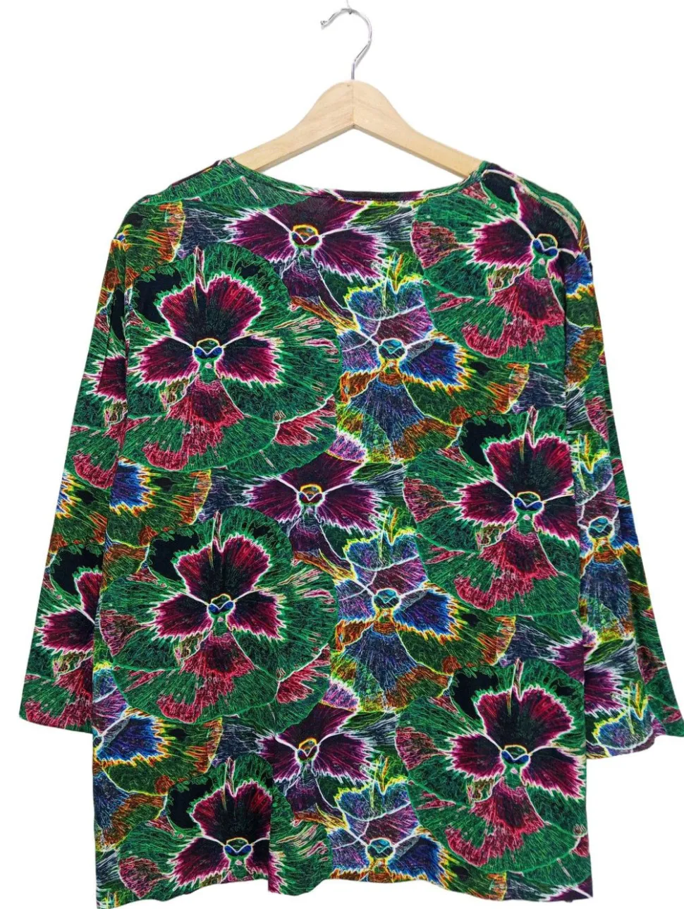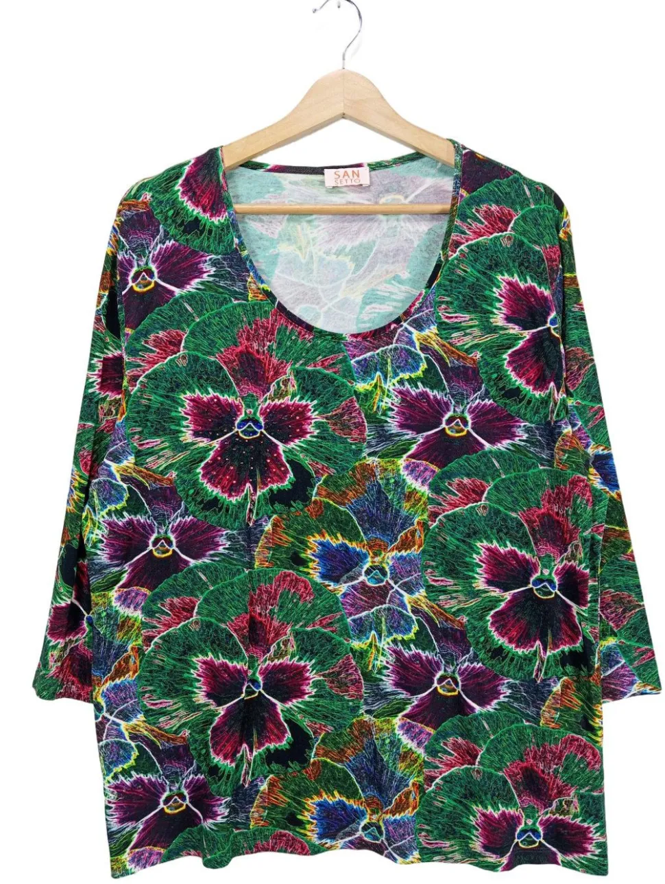 - San Setto Langarm-Bluse, grün-lila Blumenmuster