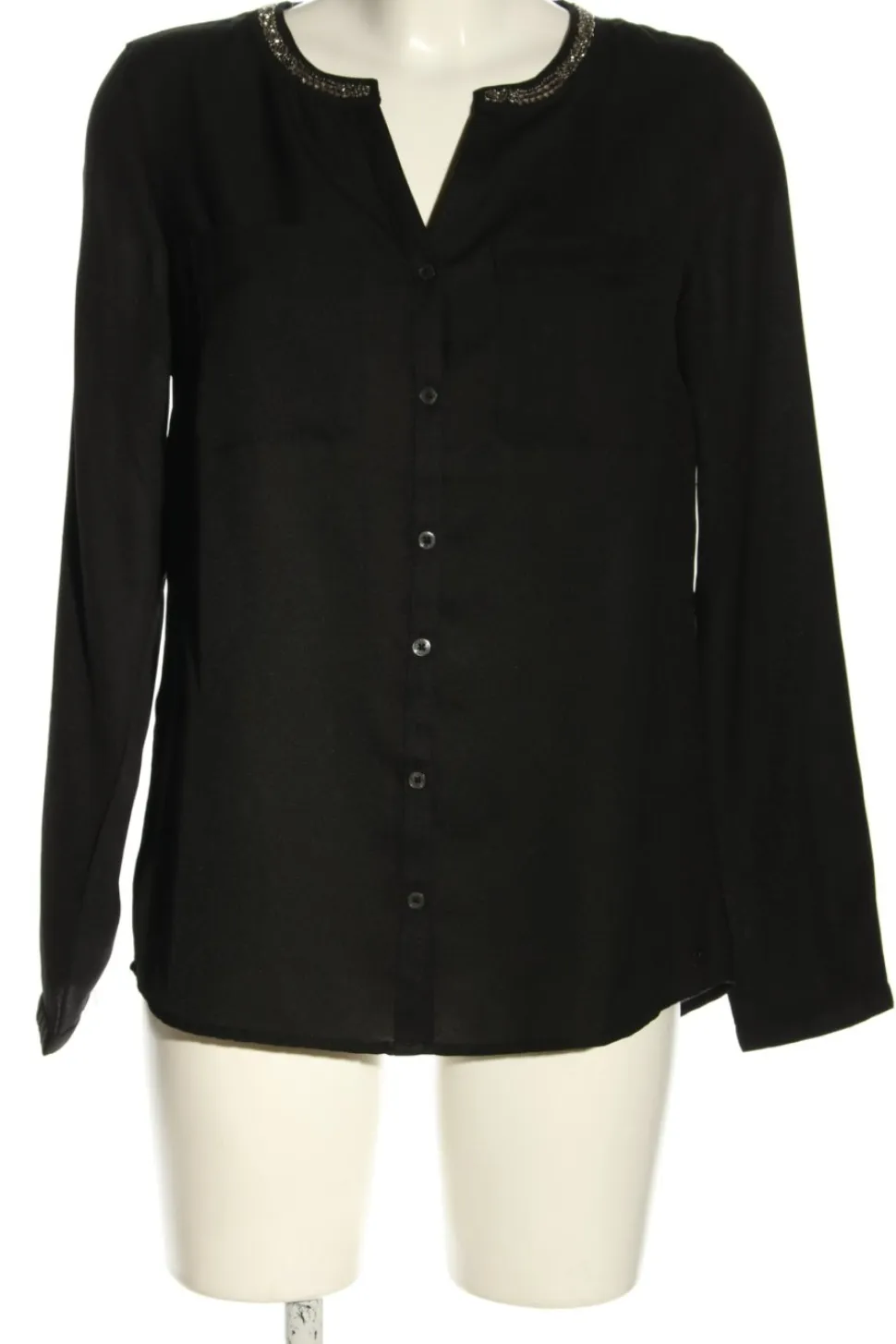 - Rundhalsausschnitt, Schlüssellochausschnitt, Knopfverschluss am Ärmelsaum, Knopfverschluss, Business-Look, klassischer Stil
