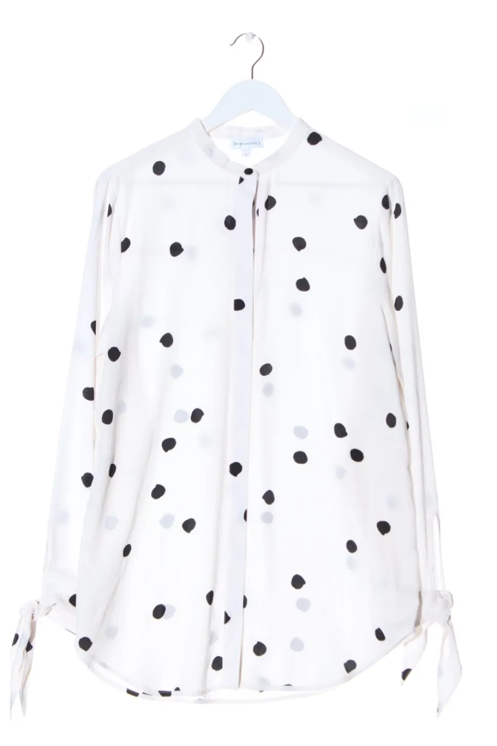 - Warehouse Langarmhemd, weiß-schwarz Punktemuster
