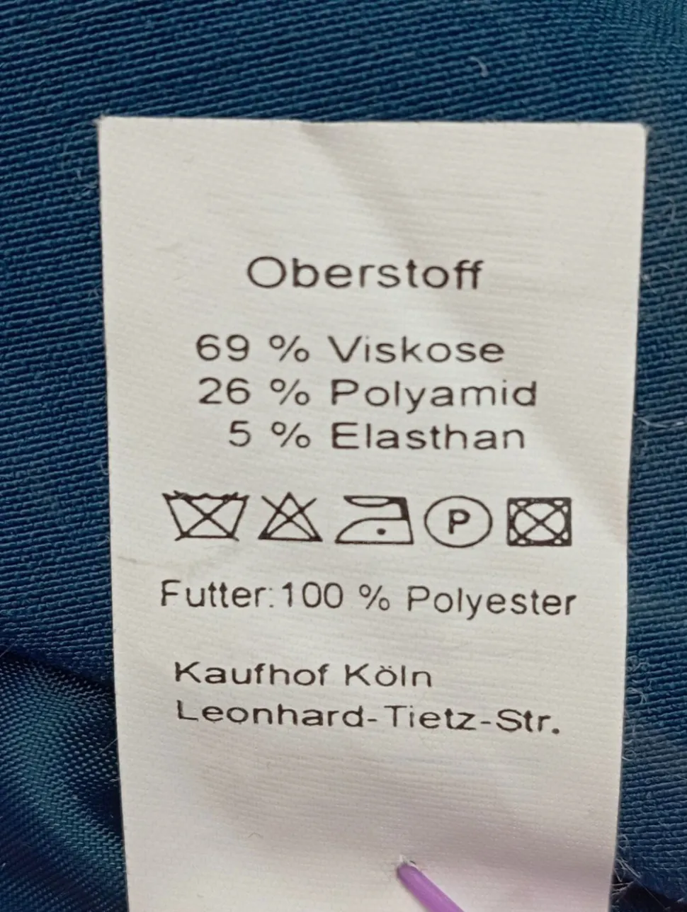 - Außenmaterial: 69% Viskose, 26% Polyamid, 5% Elasthan