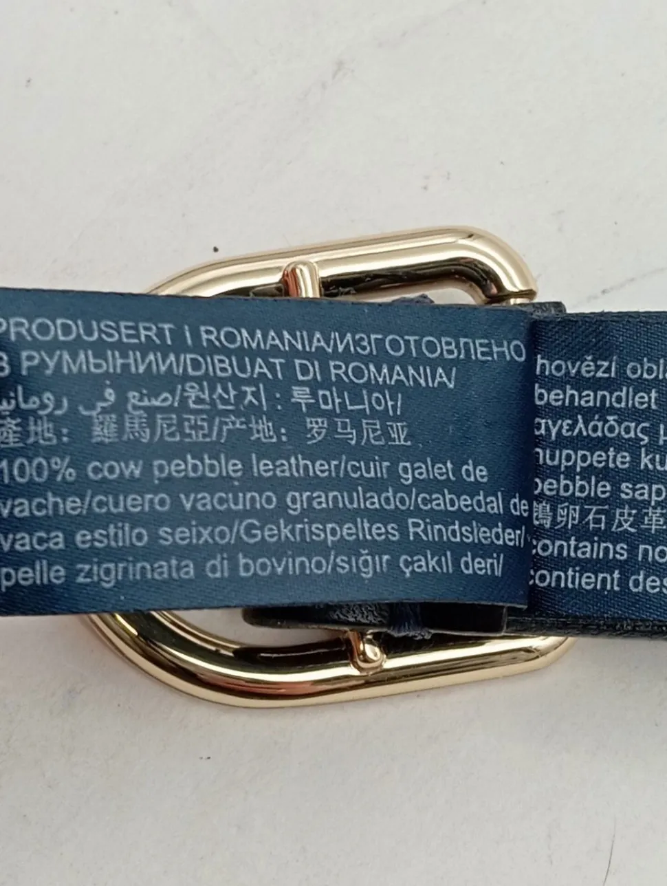 - Maße: Gesamtlänge 98 cm, Breite 2 cm, Schnallenbreite 4 cm, Schnallenhöhe 3 cm