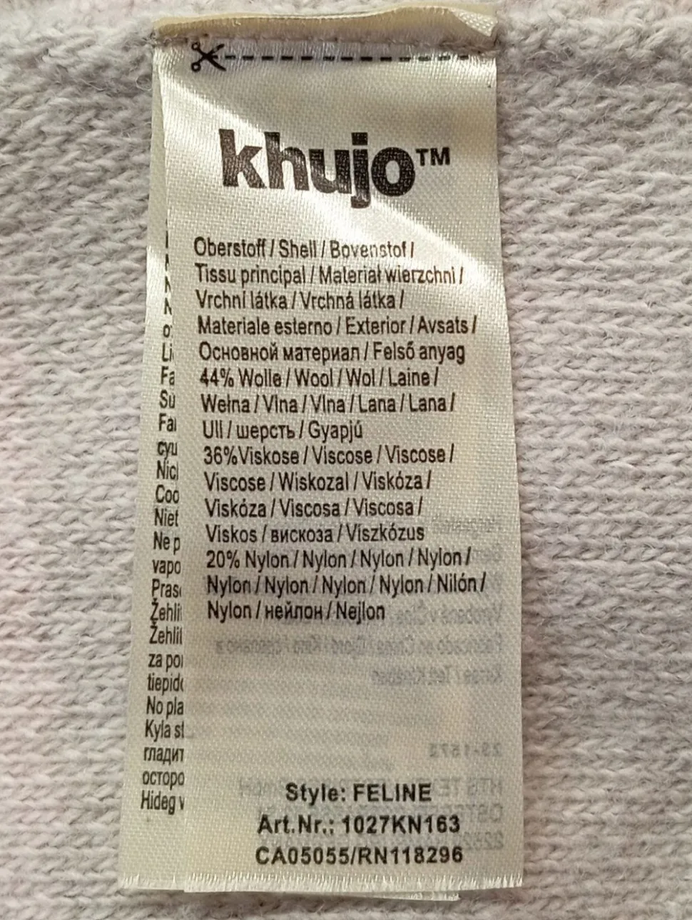 - Außenmaterial: 44% Wolle, 36% Viskose, 20% Nylon