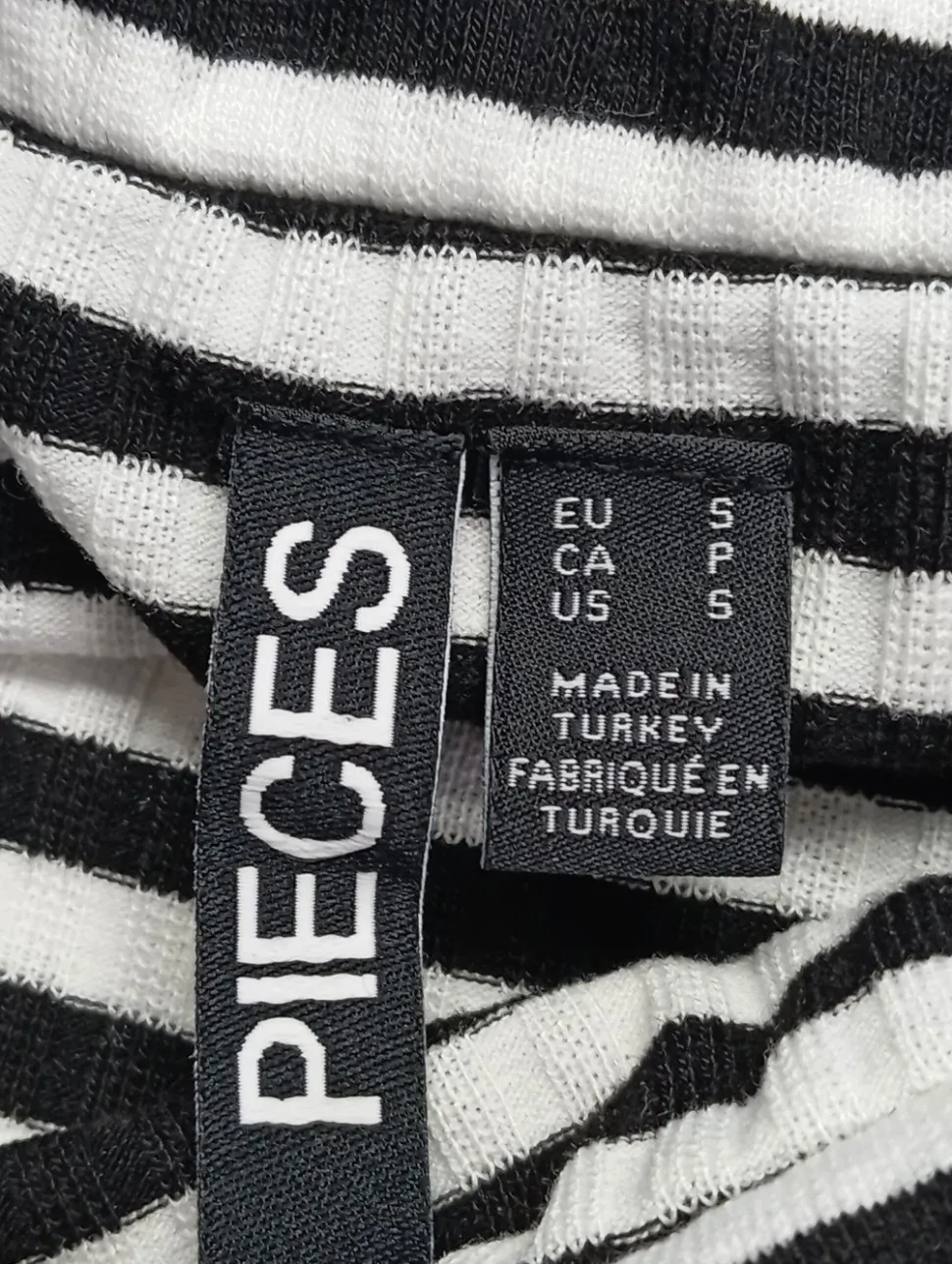 - Pieces Longsleeve, schwarz-weiß Streifenmuster