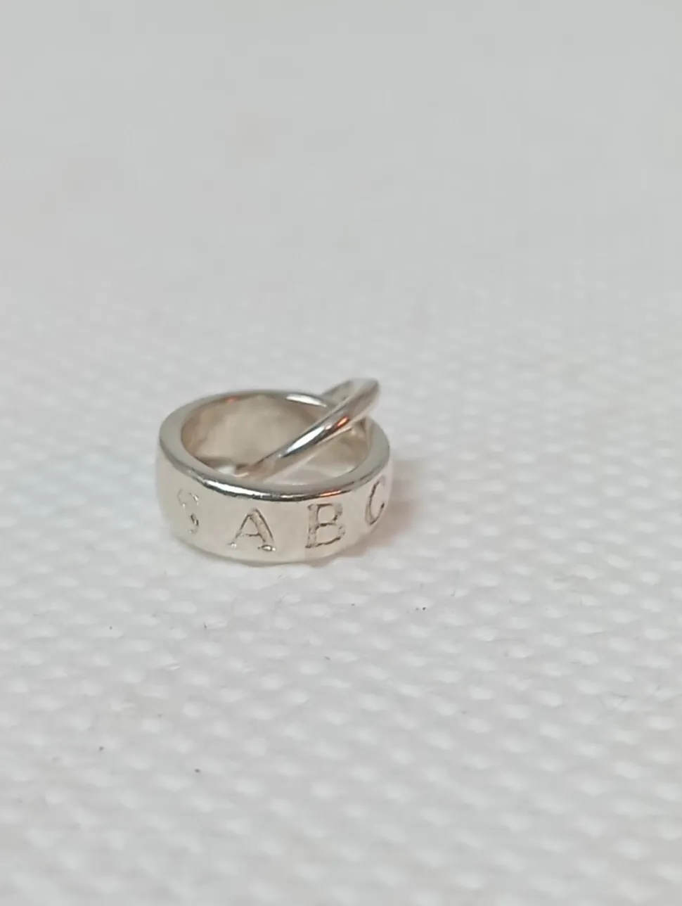 - Details: silberfarbiges Material, runder Anhänger, Logo-Applikation aus Metall