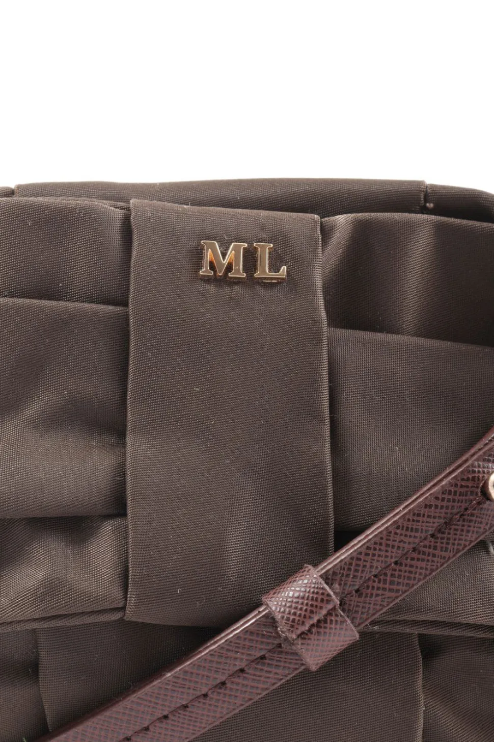 - Details: goldfarbene Hardware, Schulterriemen, Karabinerelemente, Logo-Applikation aus Metall, gemustertes Futter