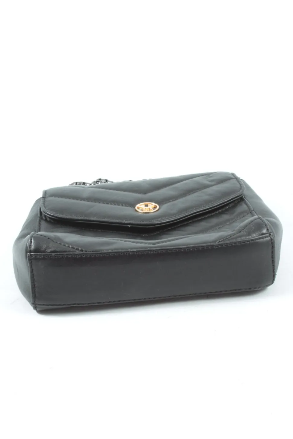 - Details: schwarze Hardware, Tragekette, Logo-Applikation aus Metall, Steppungen, Ösenelemente