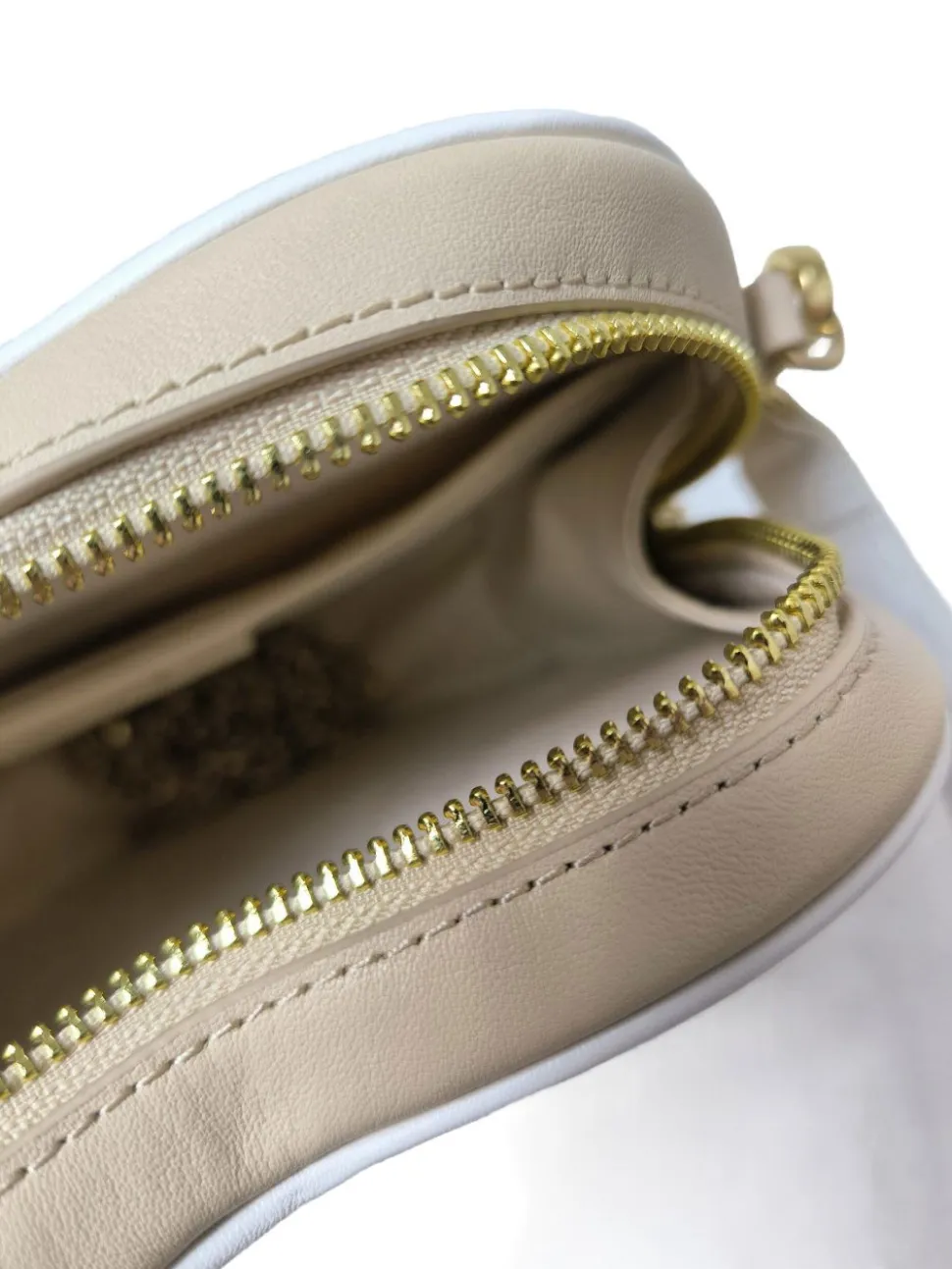 - Details: goldfarbene Hardware, Schulterriemen, Tragekette, Karabinerelemente, Metallelemente, Paspelkanten, Logo-Applikation innen aus Leder, verschließbares Innenfach