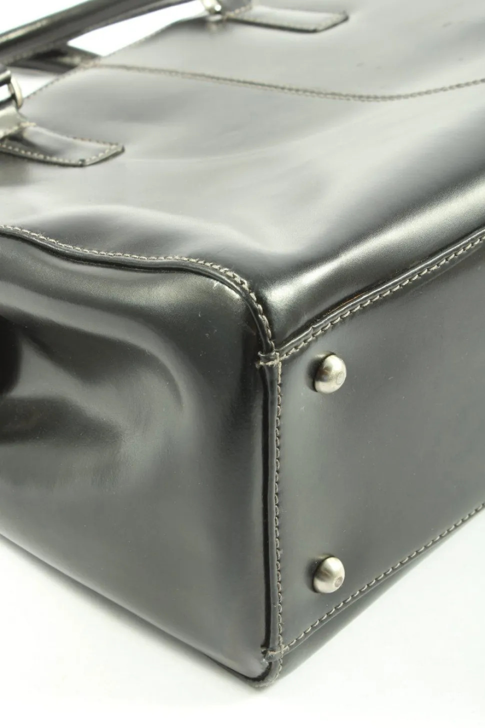 - Details: silberfarbene Hardware, Standfüßchen, Henkel, Reißverschlussinnenfach, verschließbares Innenfach