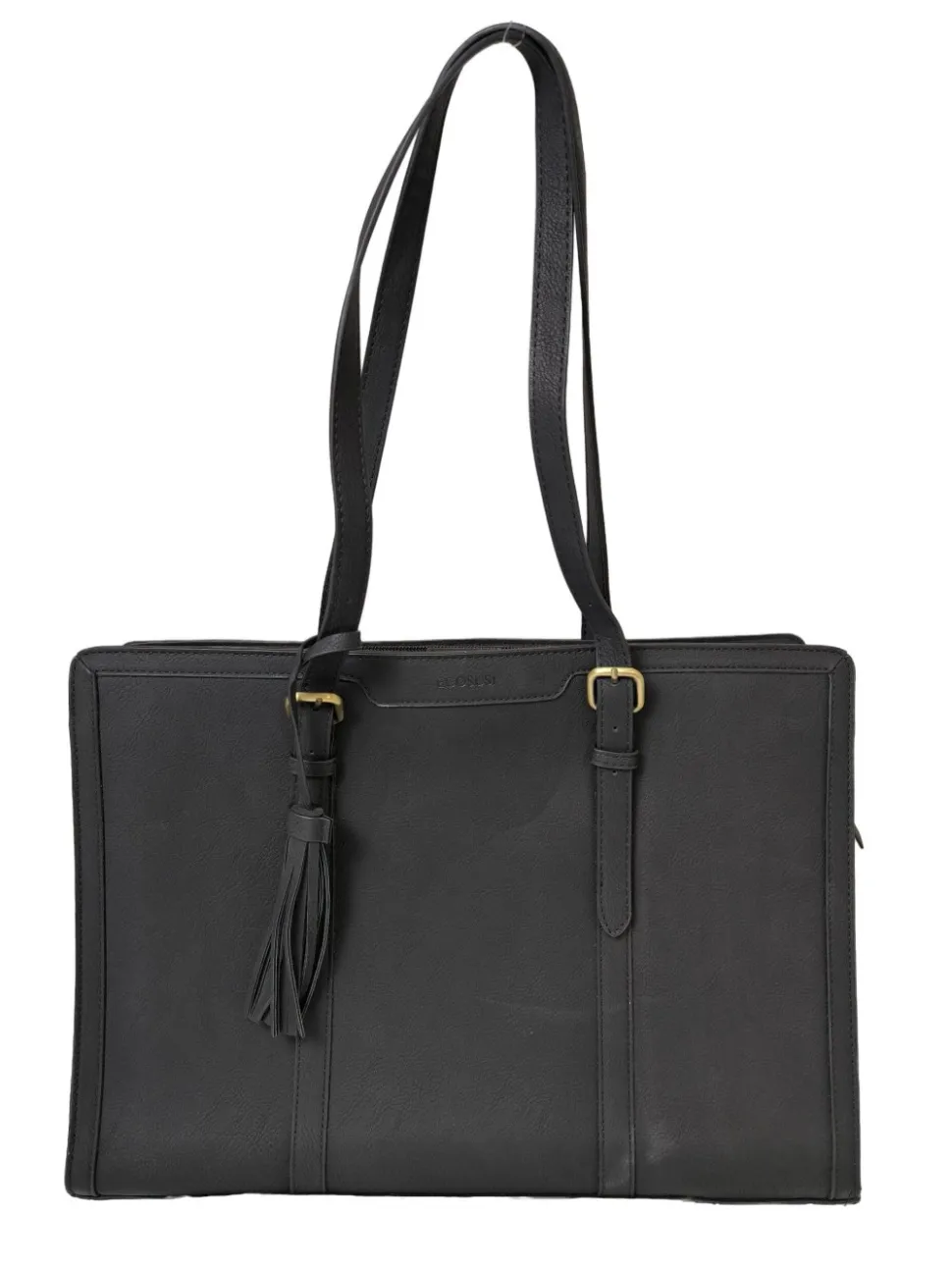 - Details: befestigter Taschenanhänger, Standfüßchen, Henkel, Logo-Applikation, Reißverschlussinnenfach