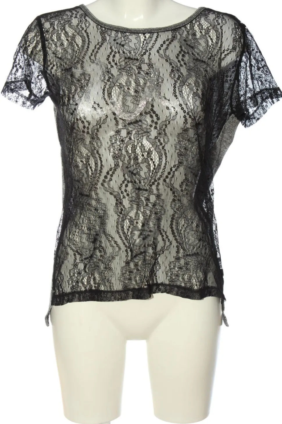 - Rundhalsausschnitt, offene Kanten am Ärmelsaum, Elegant, klassischer Stil, Transparenz-Optik