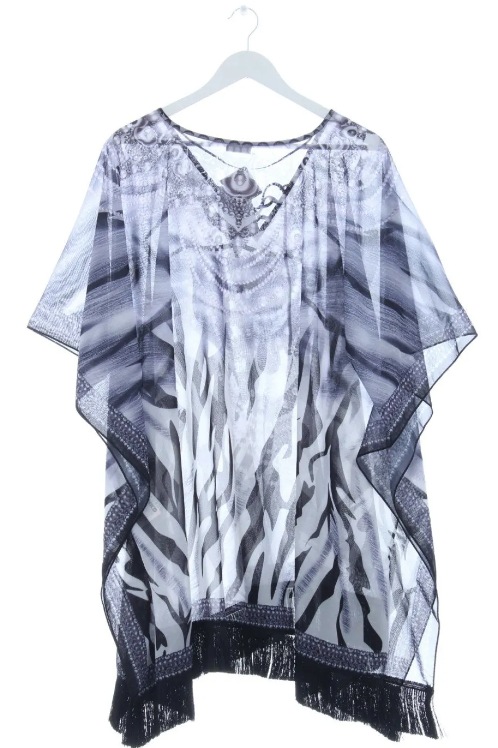 - V-Ausschnitt, Schnürverschluss, abstraktes Muster, Allover-Druck, Casual-Look, schlichter Stil, Transparenz-Optik