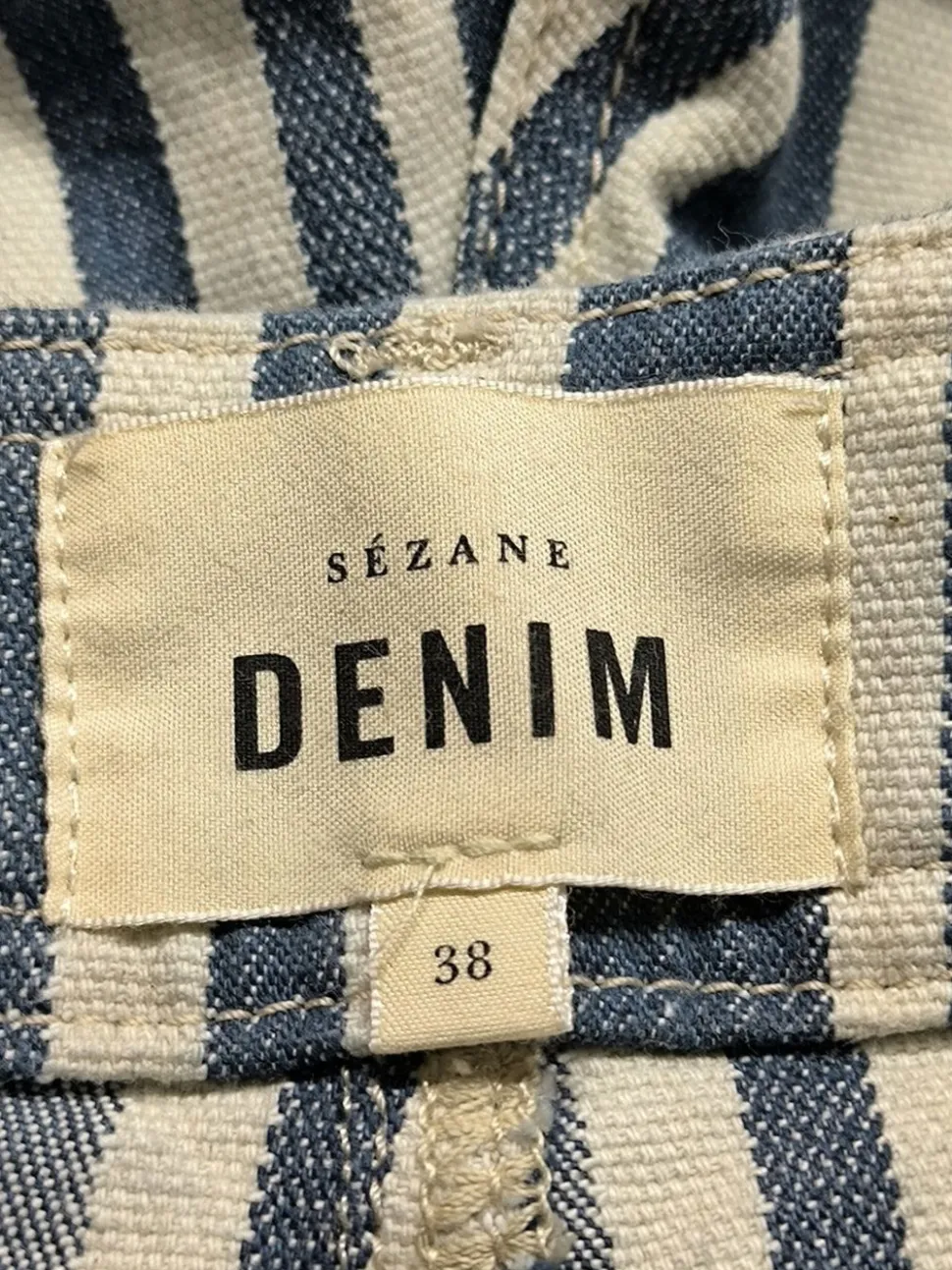 - Sézane Strick Twin Set, blau-weiß Streifenmuster