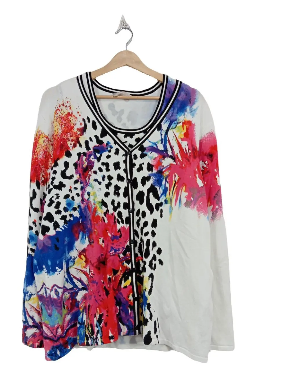 - U-Ausschnitt, Bund am Ärmelsaum, Knopfverschluss, Allover-Druck, Blumenmuster, Leomuster, Casual-Look, Street-Fashion-Look