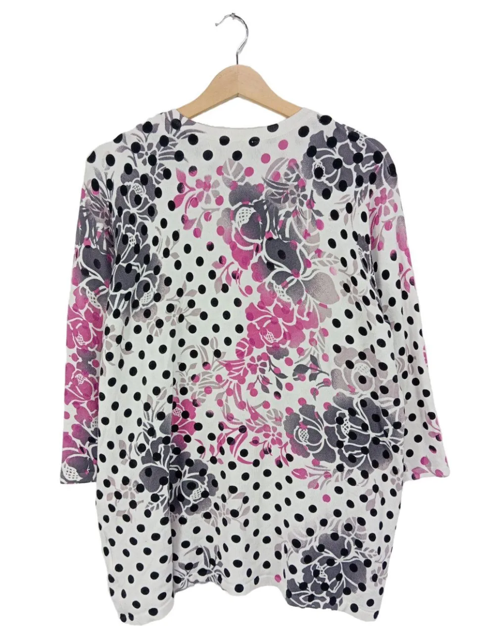 - U-Ausschnitt, angeschnittener Kragen, Bund am Ärmelsaum, Knopfverschluss, Allover-Druck, Blumenmuster, Punktemuster, Casual-Look, schlichter Stil