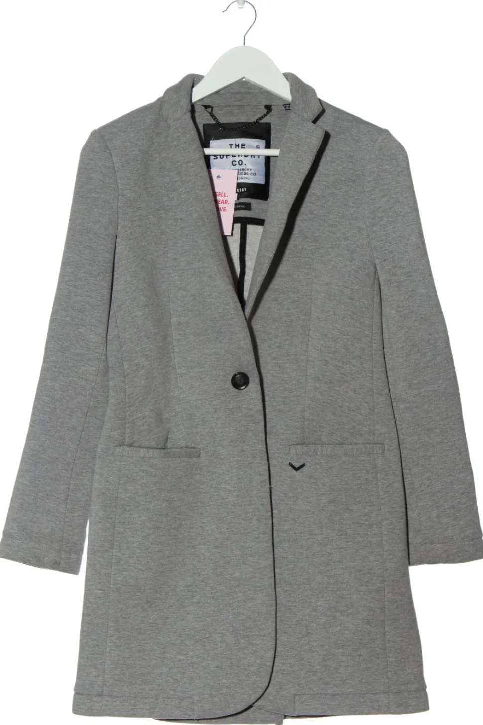 - Superdry Strickmantel, hellgrau meliert
