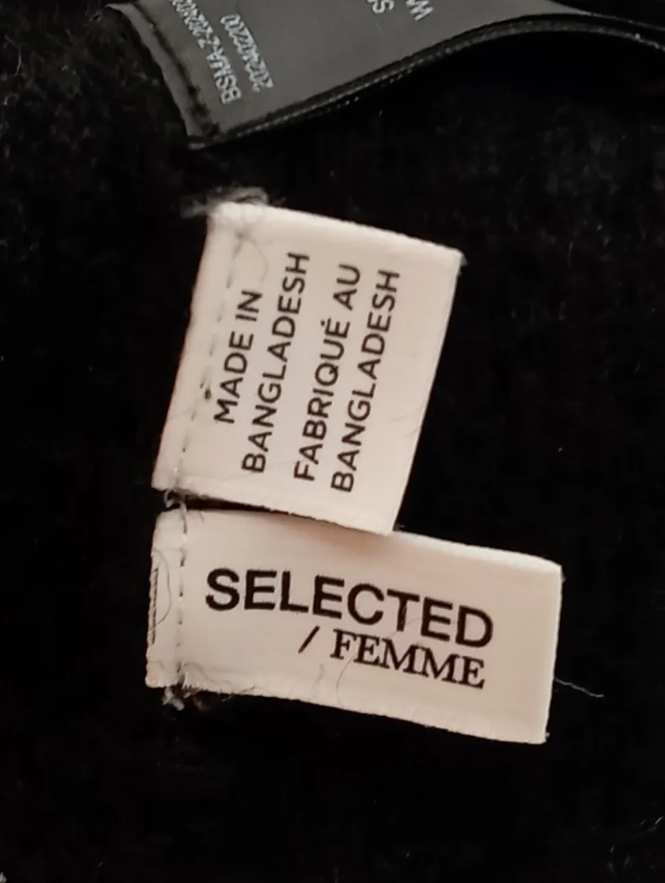 - Selected Femme Strickmütze, schwarz Zopfmuster