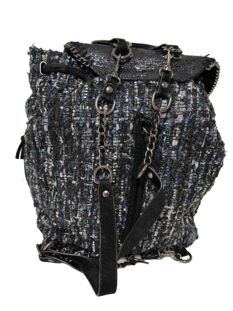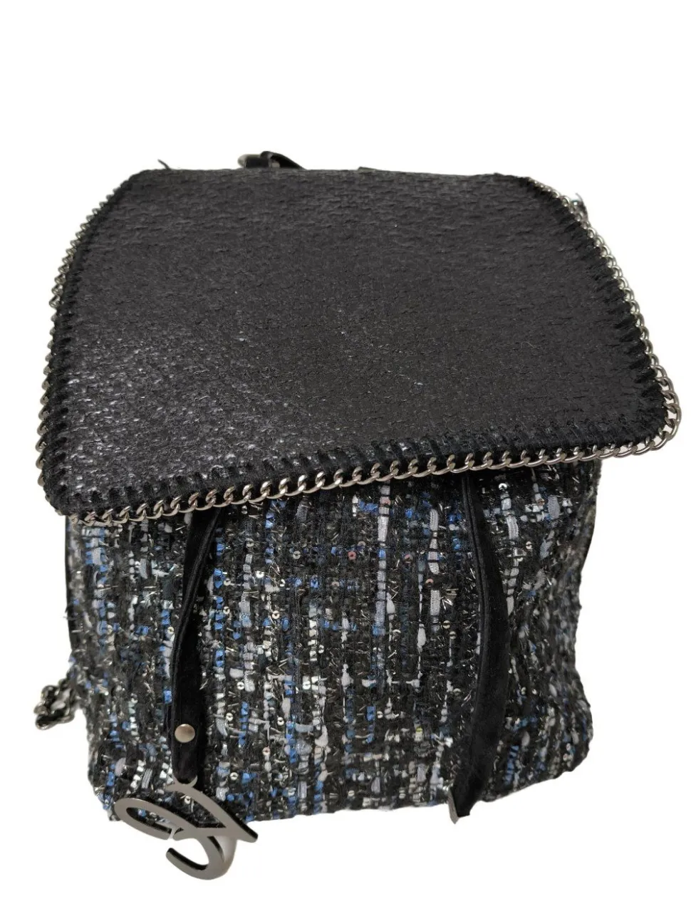 - Details: silberfarbene Hardware, Schulterriemen, Karabinerelemente, Nietenelemente, verschließbares Innenfach
