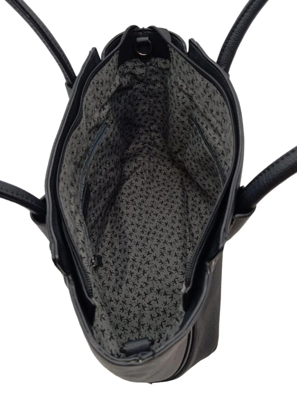 - Details: Henkel, Reißverschlusstaschen außen, gemustertes Futter, Reißverschlussinnenfach