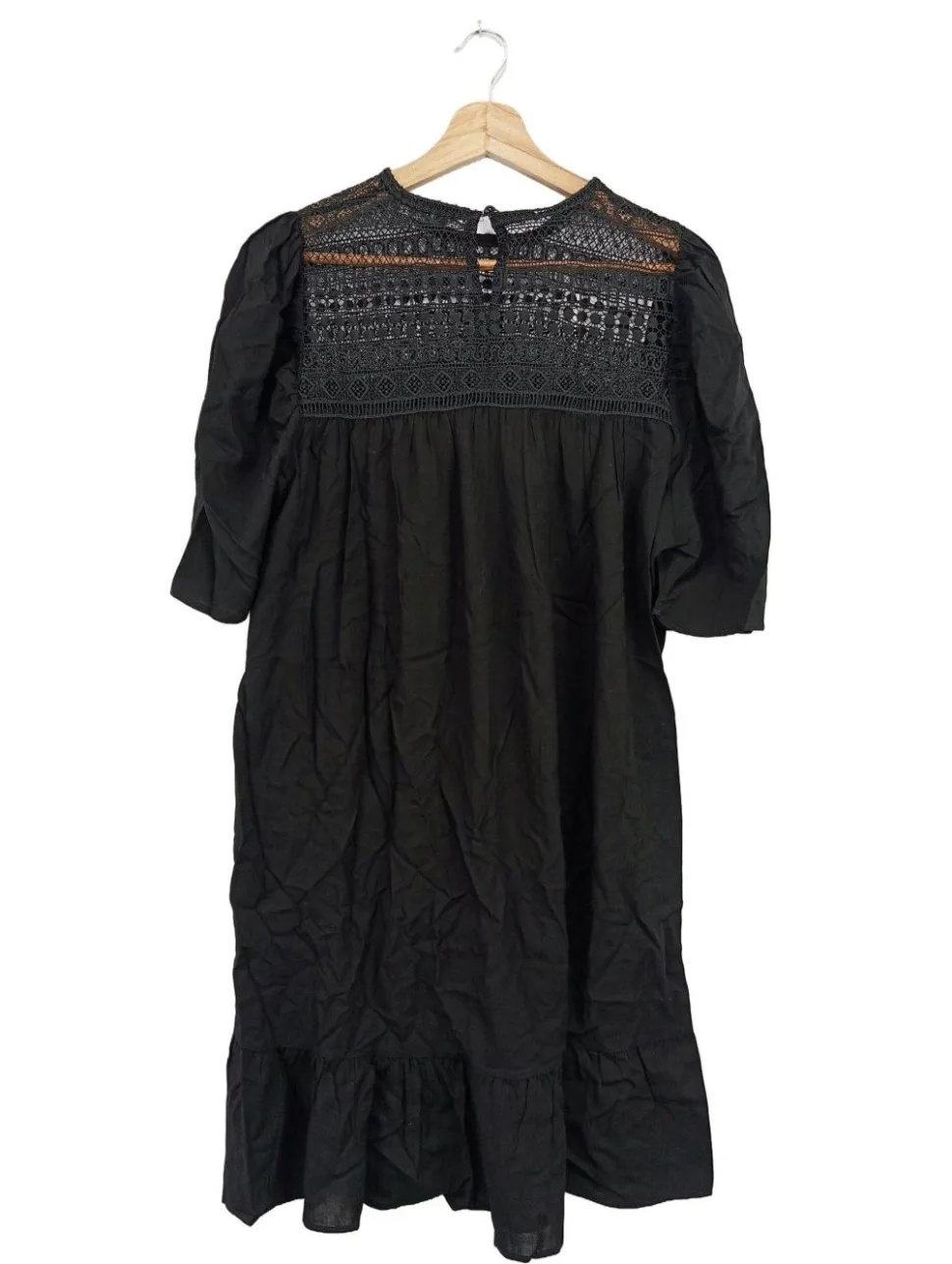 - Rundhalsausschnitt, Knopfverschluss hinten, Elegant, klassischer Stil, Transparenz-Optik