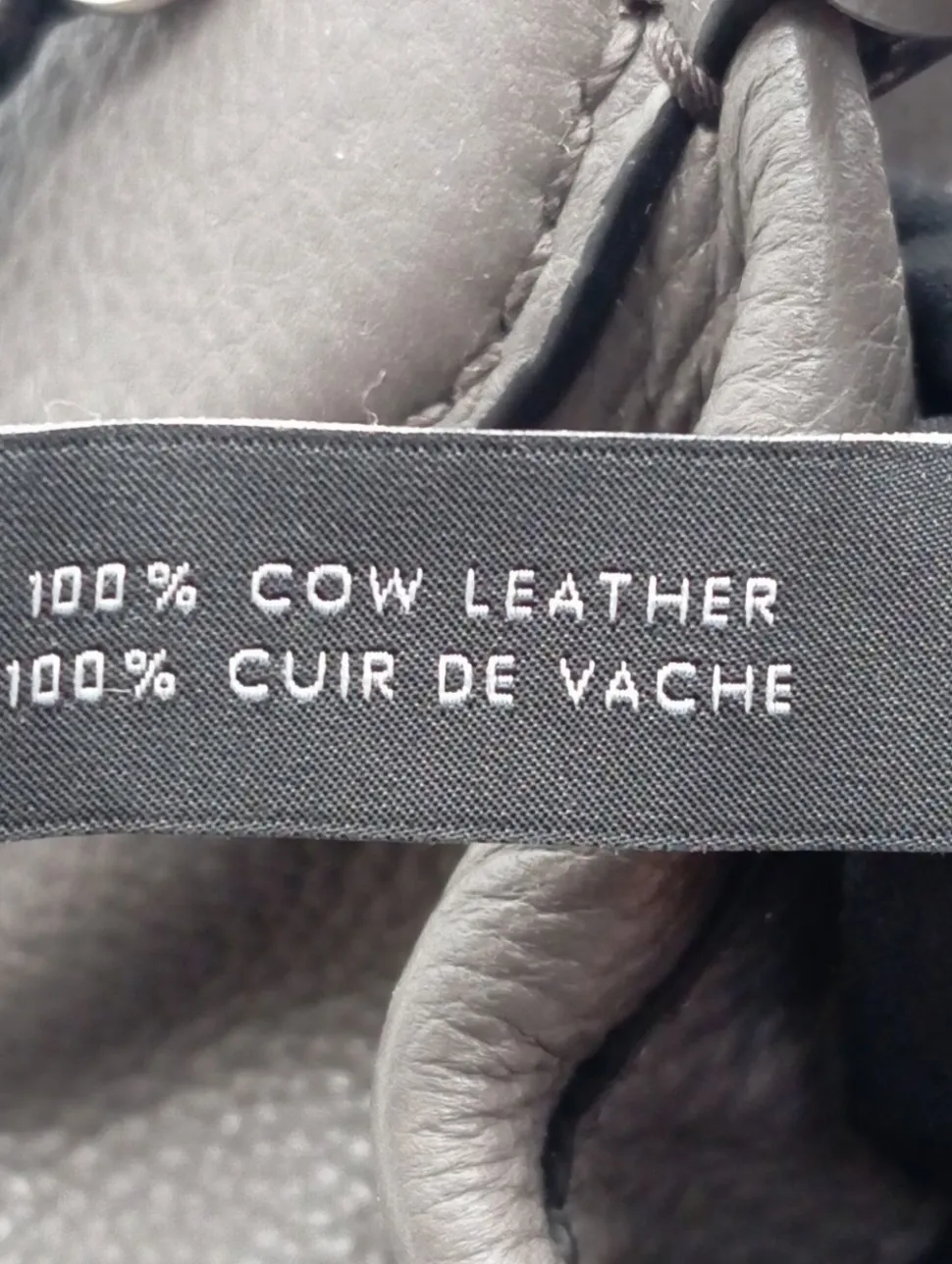 - Details: graue Hardware, Henkel, Schulterriemen, Karabinerelemente, Logo-Applikation aus Metall, Logo-Applikation innen aus Leder, halboffenes Innenfach