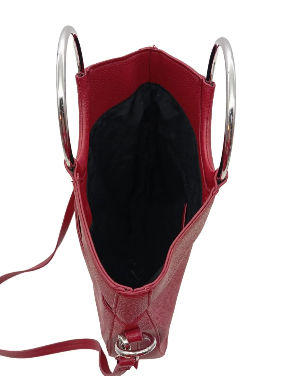 - Details: silberfarbene Hardware, Henkel, Schulterriemen, Karabinerelemente, Logo-Applikation innen aus Leder, Reißverschlussinnenfach