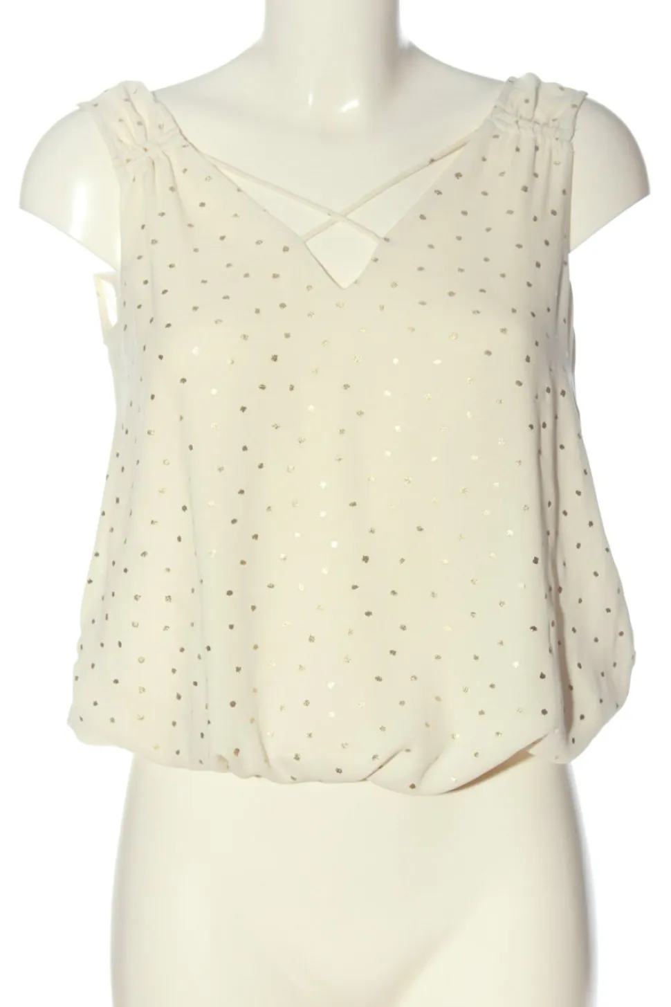 - Zara Basic ärmellose Bluse, creme-goldfarben Allover-Druck