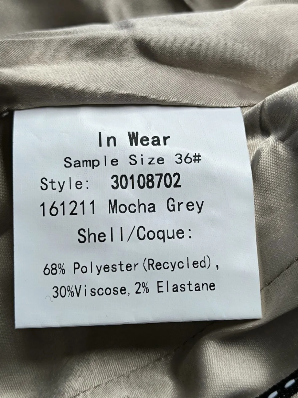 - Außenmaterial: 68% Polyester, 30% Viskose, 2% Elasthan