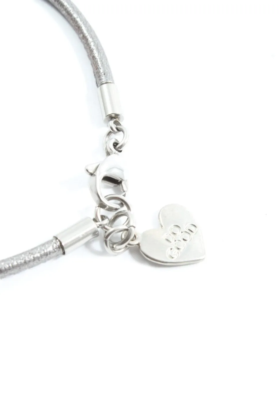 - Details: silberfarbiges Material, große Anhänger, Lederbandkette, Logo-Applikation