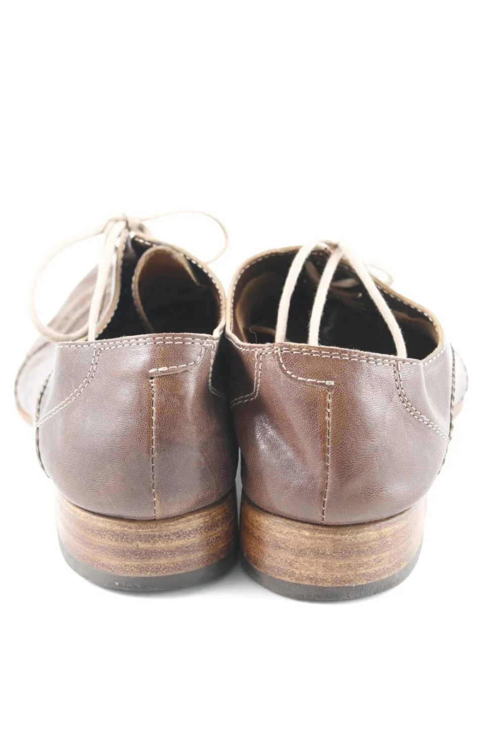 - kleiner Absatz, Absatz in Schicht-Optik, glatte Laufsohle, eckige Schuhspitze, Schnürverschluss, Casual-Look
