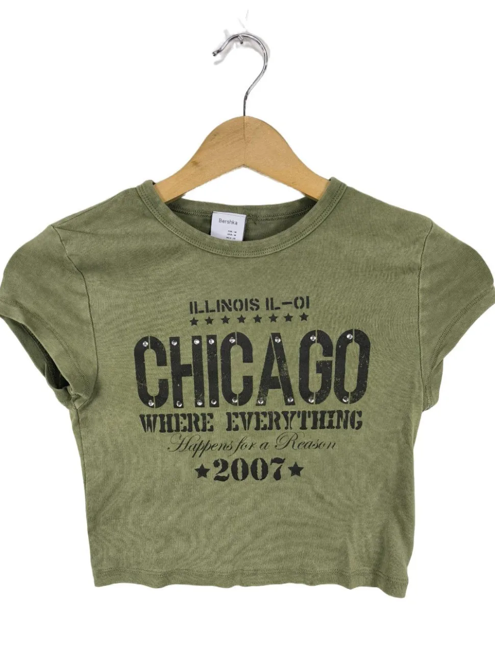 - Bershka Cropped Shirt, khaki Schriftzug gedruckt